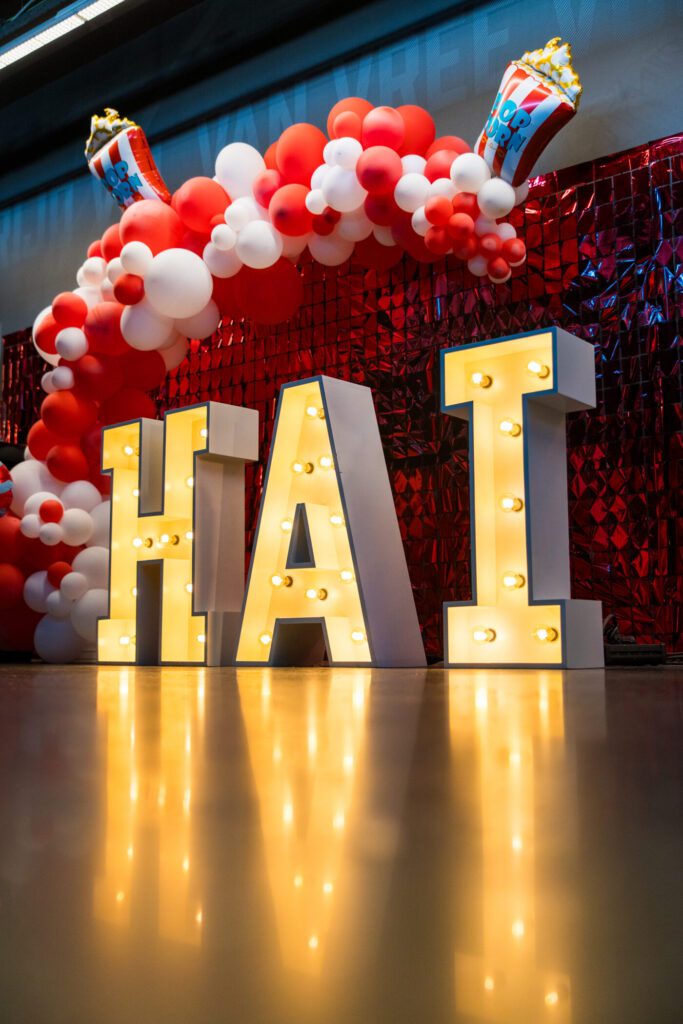 In het Philips Stadion in Eindhoven vierden alle collega’s van Hutten en Albron de lancering van overkoepelende organisatie HAI. Onder het motto ‘Samen meer impact’ toverden we het stadion om tot een bruisende eventlocatie. In het feestcafé borrelde de gezelligheid, op de kermis voelde iedereen zich weer even kind en de conceptenmarkt barstte van de culinaire creativiteit. Knallende afsluiter van het weekend was een spetterend optreden van zangeres Evandee, direct aan het veld.