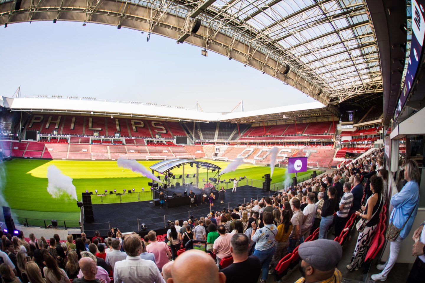 In het Philips Stadion in Eindhoven vierden alle collega’s van Hutten en Albron de lancering van overkoepelende organisatie HAI. Onder het motto ‘Samen meer impact’ toverden we het stadion om tot een bruisende eventlocatie. In het feestcafé borrelde de gezelligheid, op de kermis voelde iedereen zich weer even kind en de conceptenmarkt barstte van de culinaire creativiteit. Knallende afsluiter van het weekend was een spetterend optreden van zangeres Evandee, direct aan het veld.
